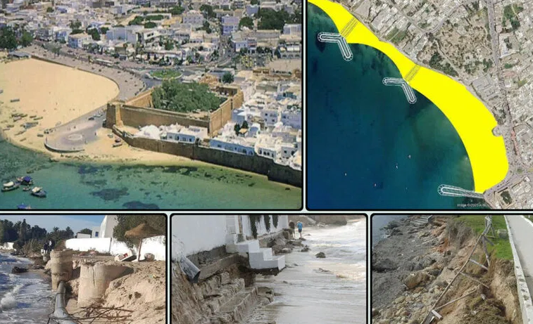 « La « plage Yasmina » a reculé de plus de 10 m en deux ans, soit un rythme de recul de 5m par an, et les experts ne sont guère optimistes quant à l’évolution ultérieure de cette plage. Près de trois hectares de sable ont été submergés par la mer entre 2012 et 2019, le siège du Club nautique fut englouti en 2020 les canalisations des eaux usées sont à découvert depuis plusieurs mois, certaines sont endommagées et se déversent directement dans la mer. », souligne Dr Sahli.
