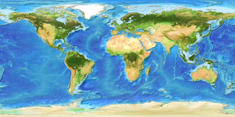 Bathymétrie par satellite à l’échelle mondiale. Kevin Gill/GEBCO/FlickrCC BY