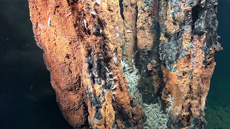 Cheminée hydrothermale sur la zone d’étude. Image prise par «Victor», le robot télécommandé qui plonge à 2 000 mètres de fond et ramène des échantillons. IfremerFourni par l’auteur