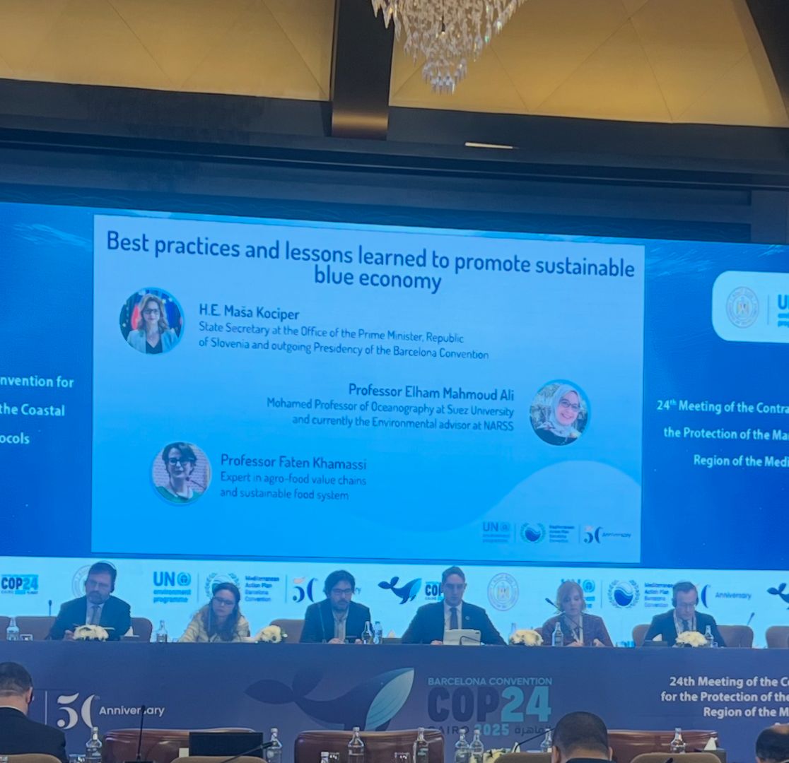 L’intervention de Faten Khamassi, experte des chaînes de valeur agroalimentaires et des systèmes alimentaires durables :« Coopération méditerranéenne : la Tunisie trace sa voie vers une économie bleue durable et inclusive »